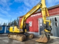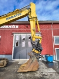 Keskusvoitelu, Kaksi 2-toim. korkeapainelisähydrauliikkaa, Diesel-lämmitin, Hydr. PKL. Engcon EC233 S80/S80 Pihdeillä, DC2, Kivisuojat, La-puh, Työvalot. Kuokkakauha.