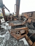 Maschine mit Spezialausleger – Gewicht 16 t, NICHT BEWEGBAR – Nach dem Brand war die Kabine vollständig ausgebrannt, die elektrische Anlage, der hintere Teil der Maschine, die Motorabdeckungen und der Motor selbst waren verbrannt, Verformungen an mehreren Stellen, einige bewegliche Teile können schwergängig oder verrostet sein, wird als Ersatzteilspender verkauft – Achsen, Ausleger, Schaufel, Räder usw.