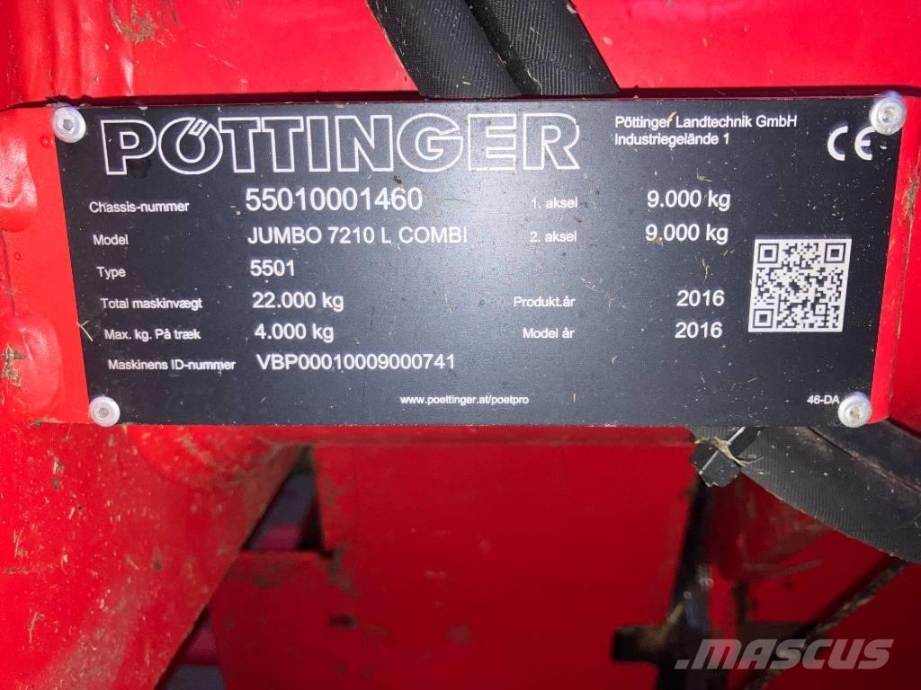 Pöttinger Jumbo 7210 combiline, årgang 2016, hydraulisk forsmæk, 710/50R36,5 hjul, velholdt snittevogn.
