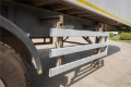 Plank sided aluminium body with automatic tailgate and Dawbarn side to side sheeting system. Tipping powered by an Edbro front-mounted ram. Running on air suspension with Mercedes Benz disc brake axles and Knorr Bremse braking system. Fitted with swing up rear underrun bumper and JOST landing legs.