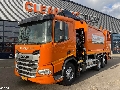 EN: Airconditioning, Air suspension rear, Aluminium fuel tank, Central armrest, Central lubrication, Cruise control, Euro 6, Remote control crane, Rental garbage truck, Reversing camera, Warning lights