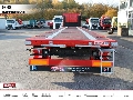 Drei-Achs-Aggregat, mit Scheibenbremsen Ø ca. 430 mm, Einpresstiefe ca. 120 mm. Luftfederung mit ca. 180 mm Hub. Fahrzeug-Bereifung L 20520.010 Räder mit innenliegenden Sensoren gemäß UN ECE R141. I 20540.028 Bereifung 6-fach 385/65 R 22,5 UNIROYAL TH 50 20865.005 6 Stahl-Felgen 22,5 x 11.75, Einpresstiefe ca. 120 mm (ET 120). Anbauteile Fahrgestell 20110.010 Sattelstützen (Fabrikat nach Wahl von Kögel) mechanisch mit Ausgleichsfuß, ca. 24 t Hublast. Einseitenbedienung in Fahrtrichtung rechts. I 21070.117 Spritzschutzsystem (Sprühnebelunterdrückung) gemäß Verordnung (EU) Nr. 109/2011 bei Dreiachsaggregat mit Bereifung 385/65 R22,5, bestehend aus 1 Paar Viertelkreiskotflügel vor den Achsen, 1 Paar gerade Kotflügeln mit Spritzlappen zwischen 1. und 2. Achse und 1 Paar Viertelkreiskotflügel mit Spritzlappen hinter den Achsen. 22070.013 Seitliche Schutzeinrichtung nach ECE-R73. I 25620.101 2 Werkzeugkästen aus Kunststoff, wasserdicht, Abmessung (innen) ca. 545 x 400 x 400 mm. Einbau hinten 1x links und 1x rechts. 26110.015 Aufstiegsleiter hinten rechts, ausziehbar. 27510.010 hoher, starrer Unterfahrschutz hinten aus Stahl nach ECE-R58 I 71800.020 Je 1 Paar ausziehbare Warntafeln für überbreite Ladung retroreflektierend rot / weiß, mit LED-Beleuchtung, Spiralkabel und Steckverbindung. Anordnung im vorderen und hinteren Fahrzeugbereich. Brems- / Luftfederanlage 32110.057 EBS-Anlage 2S/2M mit Stabilitätsprogramm (enthält ABS/ALB-Funktion), EBS-Steckverbindung ISO 7638, (ohne Verbindungsleitungen), Feststellbremse als Federspeicherbremse, außenliegende Pneumatikanschlüsse sowie aussenliegender EBS-Diagnoseanschluß über ISO 7638 Steckverbindung. 32125.010 EBS Anlage (Fabrikat nach Wahl von Kögel) 33420.040 Luftfederanlage incl. 1 Hub- und Senkventil, montiert in Fahrtrichtung links hinter dem Achsaggregat. Fahrstellung stellt sich automatisch ein. 34320.001 2 vertauschsichere Kupplungsköpfe vorn ISO 1728 34410.010 Luftbehälter für Bremsanlage und Luftvorrat aus Stahl ( EN 286-2 ). Boden 40510.120 Plattenboden ca. 30 mm stark I 40513.020 Boden ringsumlaufend verfugt I 40542.023 Rungentaschen für Quadratrohreinsteckrungen ca. 80 x 80 mm, Anordnung gemäß Zeichnung J9: 8 Stück Rungentaschenleisten (18 Rungentaschen je Leiste: davon je 4 Stück außen + 10 Stück mittig) Vorderwand I 40532.220 Lagerung für max. 14 Quadratrohreinsteckrungen ca. 80 x 80 mm (Länge ca. 1.990 mm) an der Vorderwand innen I 41710.201 Vorderwand ca. 2.000 mm hoch mit Volumeneckrungen aus Stahl, mit profiliertem Stahlblech, mit Rahmen verschraubt/vernietet. 2 Paar Zurrpunkte (zulässige Zurrkraft ca. 1.000 kg je Ring) an der Stirnwand nach EN 12640. Seitenwand 43540.380 VarioFix-Stahl-Lochaußenrahmen I 43560.253 24 Paar Zurrbügel im Außenrahmen (nach EN 12640), zulässige Zugkraft ca. 5.000 kg je Ring. Rammschutz 42551.015 1 Paar Stahlrammpuffer ca. 160x85x85mm am Rahmenabschlussblech außen montiert. I 42552.020 Querlaufender Stahlwinkel verzinkt als Gabelstaplerschutz, sowie Verschlussnockenschutz mittig, am Rahmenabschlussblech montiert. Informationssysteme I 34790.010 Balgdruckmanometer für Achslastüberwachung. L 69100.070 Reifendrucküberwachungssystem gemäß UN ECE R141. Zubehör I 40555.108 8 Stück Quadratrohreinsteckrungen ca. 80 x 80 x 5 mm, Höhe ca. 1.990 mm, mit Federsicherung. Für Einstecktaschen in der Plattform. Farbgebung I 82100.432 Rahmen bzw. Fahrgestell erhalten zusätzlich zur KTL-Beschichtung eine Vollf...