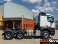 Construction-site filter, Eng. OM473,inline 6, 15.6 l, 380kW (517hp),2600 Nm, High Performance Engine Brake, Engine version, Euro III, Cyclone filter for coarse dust, Noise encapsulation in accordance with ECE NGL, Wheel arrangement 6x4, Mercedes PowerShift 3, Transmission oil cooling, Front axle 8.0 t, Front axle, straight version, Rear axle, crown wheel 300, planetary, 13.4 t, Leaf suspension, rear axle, Drum brakes on front and rear axle, Water-type secondary retarder, Frame overhang 750 mm, Wheelbase 3300 mm, Main tank, left, Tank, 430 l, left, 735 x 700 x 1000 mm, aluminium, Second tank, 430 l, right,735 x 700 x 1000 mm,alu., Fifth-wheel coupling ex factory, Fifth wheel coupling height = 190 mm, Fifth wheel coupling, manually lubricated, Fifth-wheel coupling, heavy-duty, 2, Jost JSK 38C, Weight variant 33.0 t (8.0/13.0/13.0), Vehicle, for left-side traffic, L-cab ClassicSpace, 2.30 m, tunnel 170 mm, L-cab, Cab width 2.30 m, Cab tilting mechanism, mechanical-hydraulic, Windscreen, tinted, with filter band, Front mirror, heated, Air horn, Locking system, with central locking, Extended central locking, Luxury bed, bottom, Sunblind, side, driver's side, Drawers, under bed, Stowage flaps, above windscreen, Air conditioning system, Driver's suspension seat, standard, Electronic braking system with ABS and ASR, ABS, disengageable, Reversing buzzer, Fog lamps, LED daytime running lamps, LED tail lights, Lane Keeping Assist, Attention Assist, Airbag, driver, Cruise control, Grounder