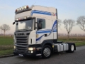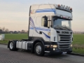 Number of axles: 2, Configuration: 4x2, Own weight: 8250 kg, Gross vehicle weight: 19000 kg, Total fuel capacity: 1400 litre, 2nd fueltank, Fifth wheel height: 109 cm, fifth-wheel: Fixed, Diff. locks: 1, Suspension type: air suspension, Cabin type: Topline, Cruise control, Tacho, Digital tachograph, Airconditioning, Parking Airco, Parking heater, Electric windows, Electric mirrors, Radio/cassette, Color: white, Heated mirrors, Lighting type: Halogen lamps, Climatecontrol, Flashing lights, Engine capacity: 324 Kw (434 Hp), Fuel type: diesel, Euro: 4, Gearbox kind: Opti-cruise, Gearbox make: Scania, Number of Gears: 12, Clutch Pedal, Add. break system, Retarder make: Scania, Power steering, ABS, ASR, Starter battery, Central locking, Seats configuration: 1+1, Seat cover: cloth, Chair adjustment: Manually